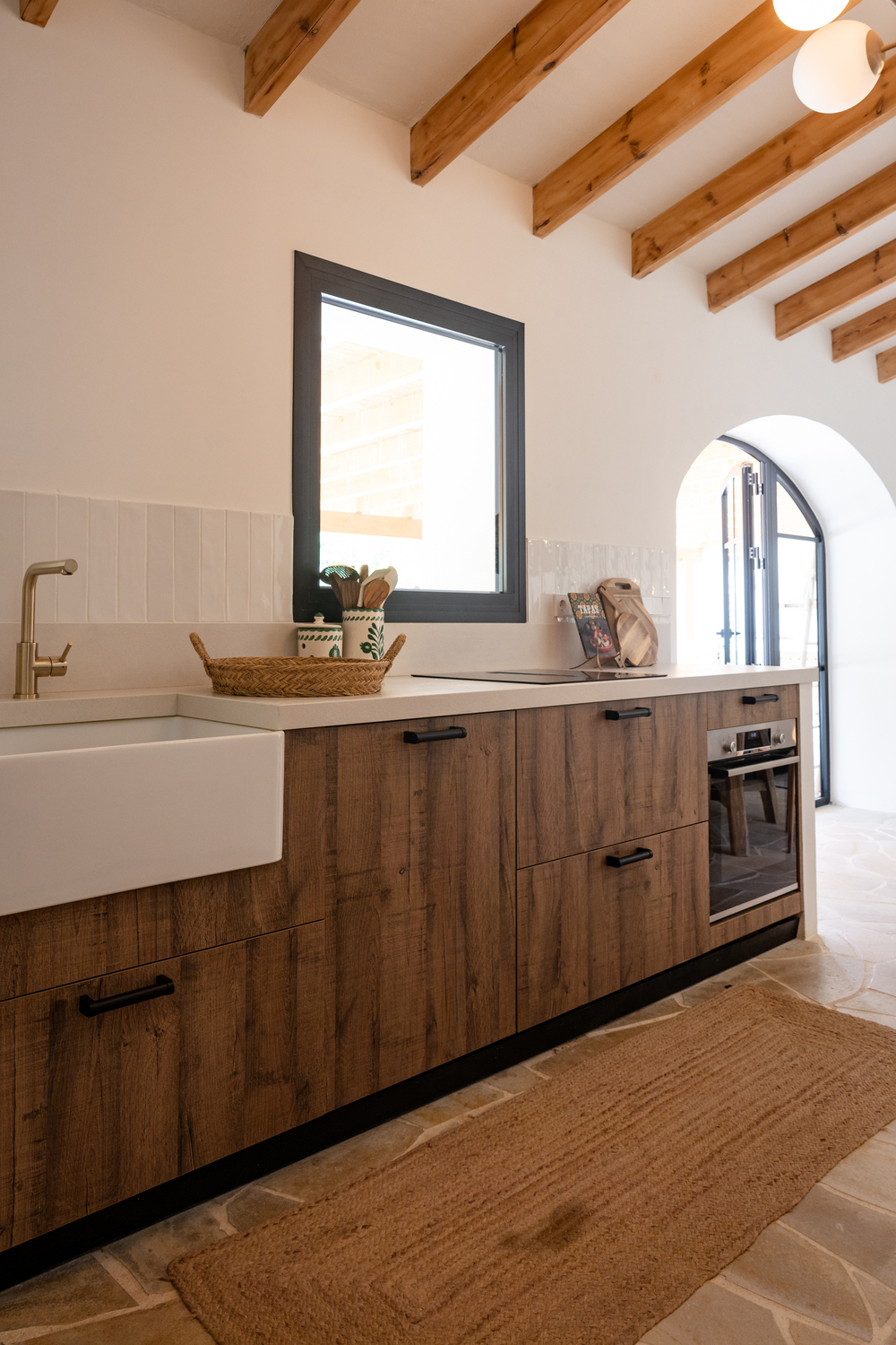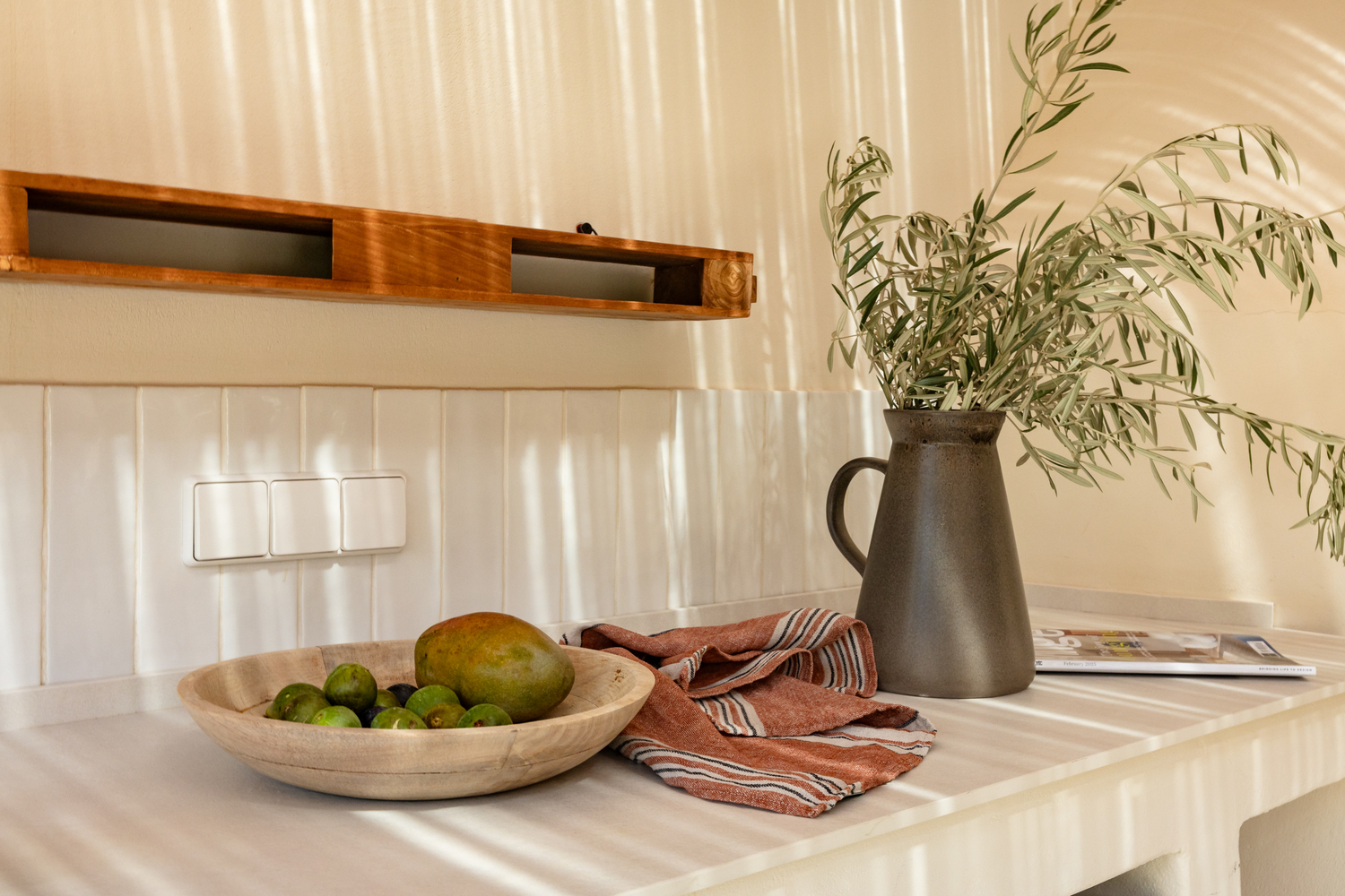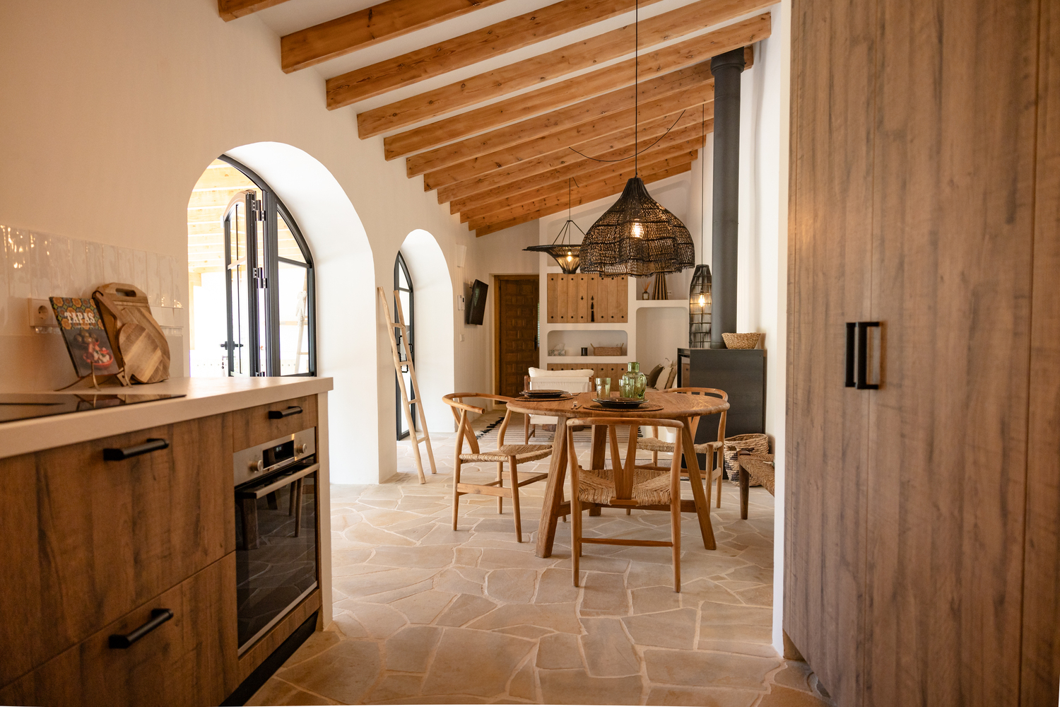 De finca biedt een open keuken in stijl met alle gewenste voorzieningen. Hier creëer je samen gezellige momenten in de open eet-woonkamer, terwijl je lokale lekkernijen bereidt..